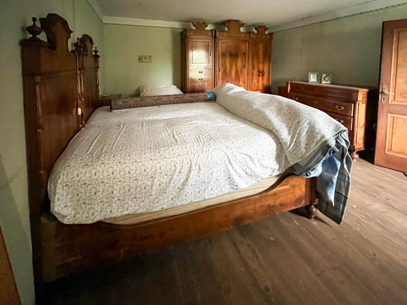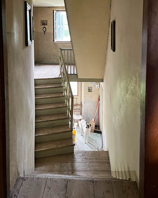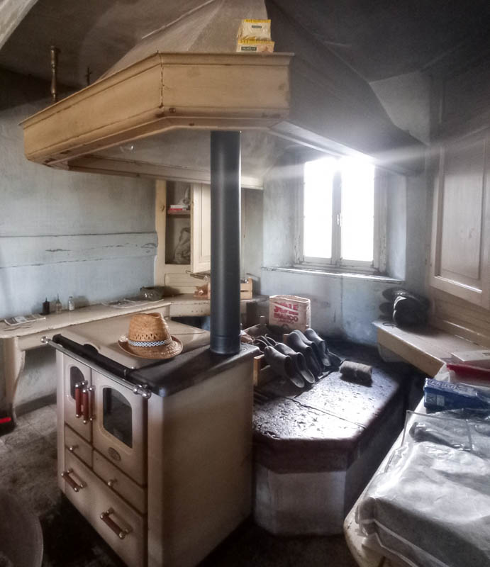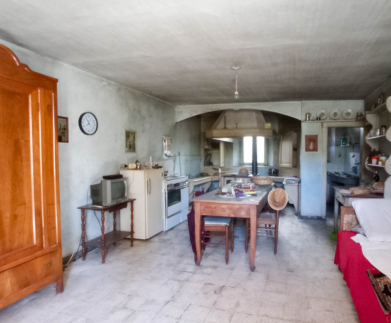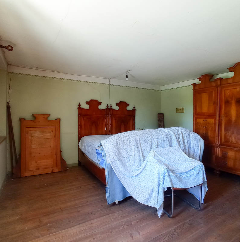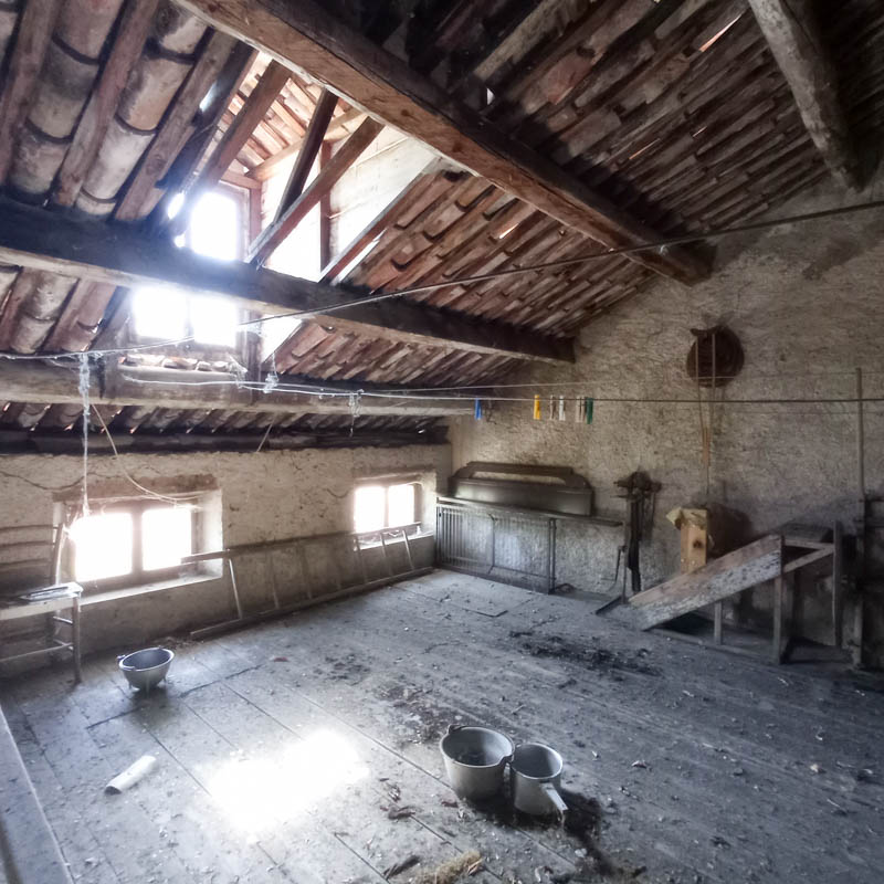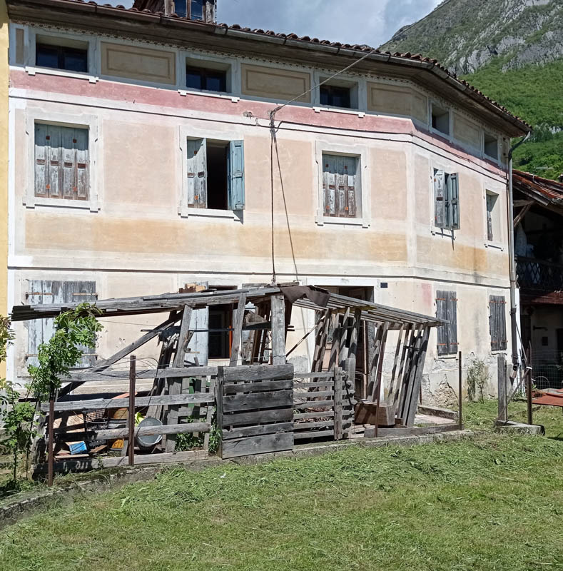 Ha un ingresso, un ampio locale con tipico "larin" e sbratta cucina, oltre ad ulteriori due locali al piano terra, 4 grandi camere e wc al piano primo e soprastante soffitta di ulteriori tre vani.