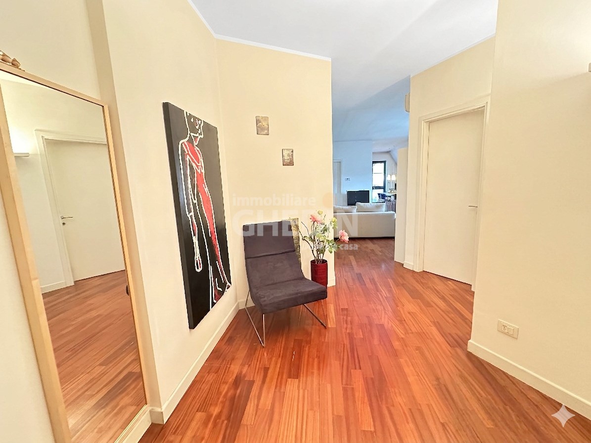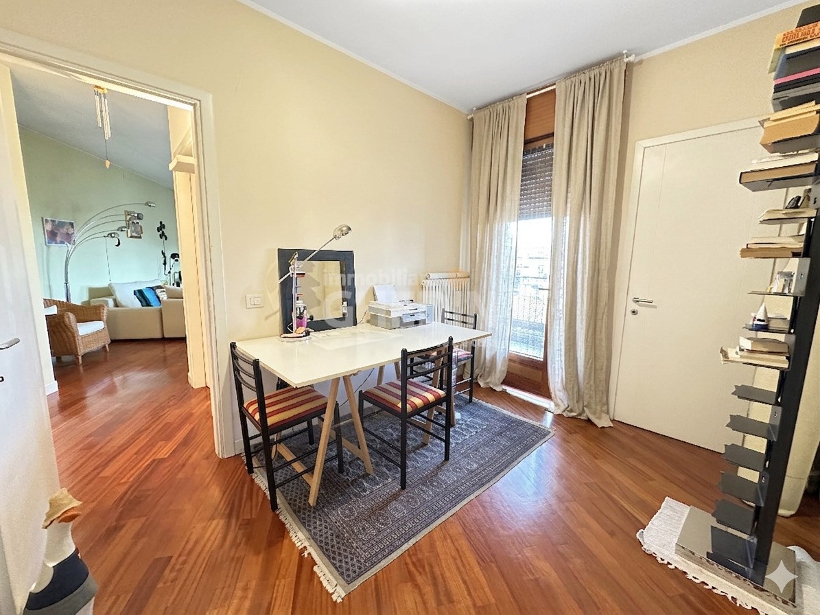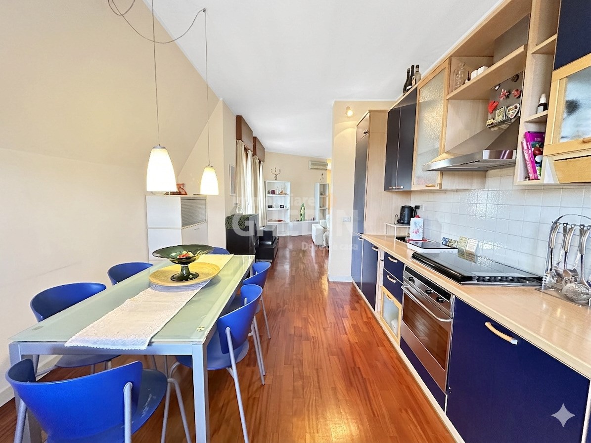 Attico in zona tranquilla, a pochi passi dal centro. L’abitazione si distingue per gli ampi spazi e la funzionalità: ingresso luminoso che collega il soggiorno alla cucina, una camera singola con terrazzo, vano lavanderia e bagno di servizio nella zona d’ingresso. La zona notte comprende una spaziosa camera matrimoniale con cabina armadio e un bagno padronale dotato di vasca idromassaggio e doccia.