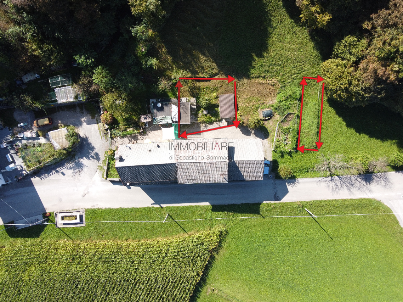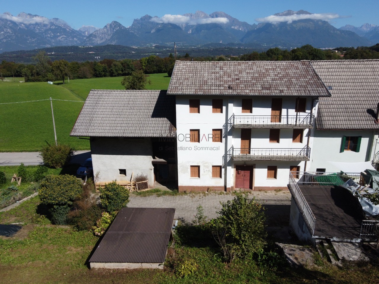Vendesi immobile residenziale composto da due appartamenti con autorimessa e cantina separate con corte comune e ulteriore corte esclusiva e spettacolare vista sulle Dolomiti.